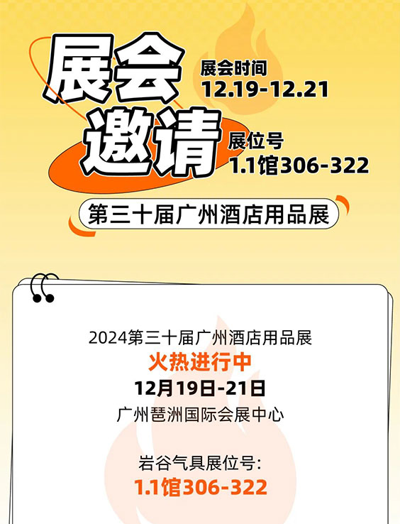 展会约请 | 12月19日-21日第三十届广州旅馆用品展览会,,,,,,,南宫NG·28(中国)相信品牌力量有限公司气具诚邀您临位品鉴